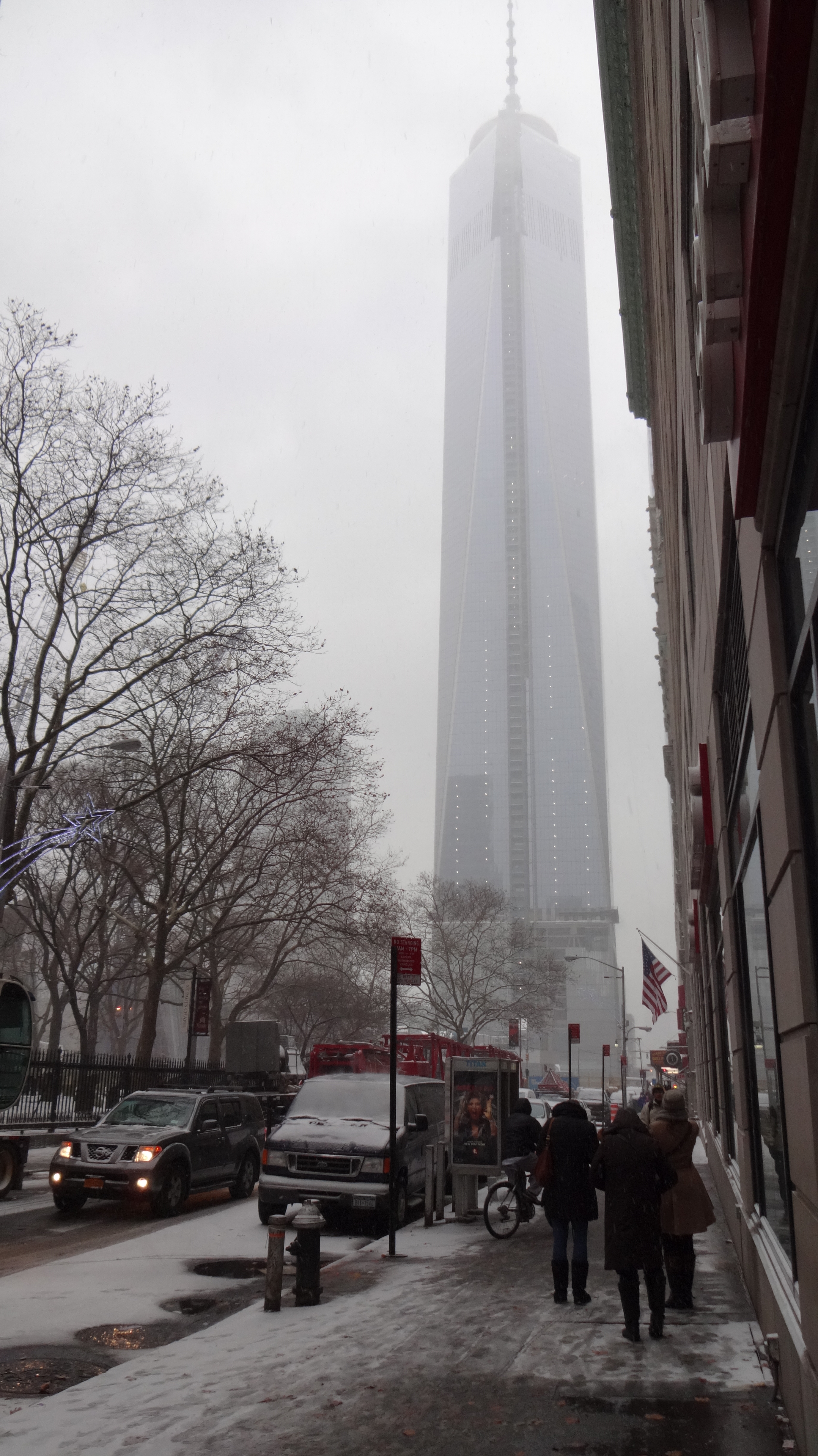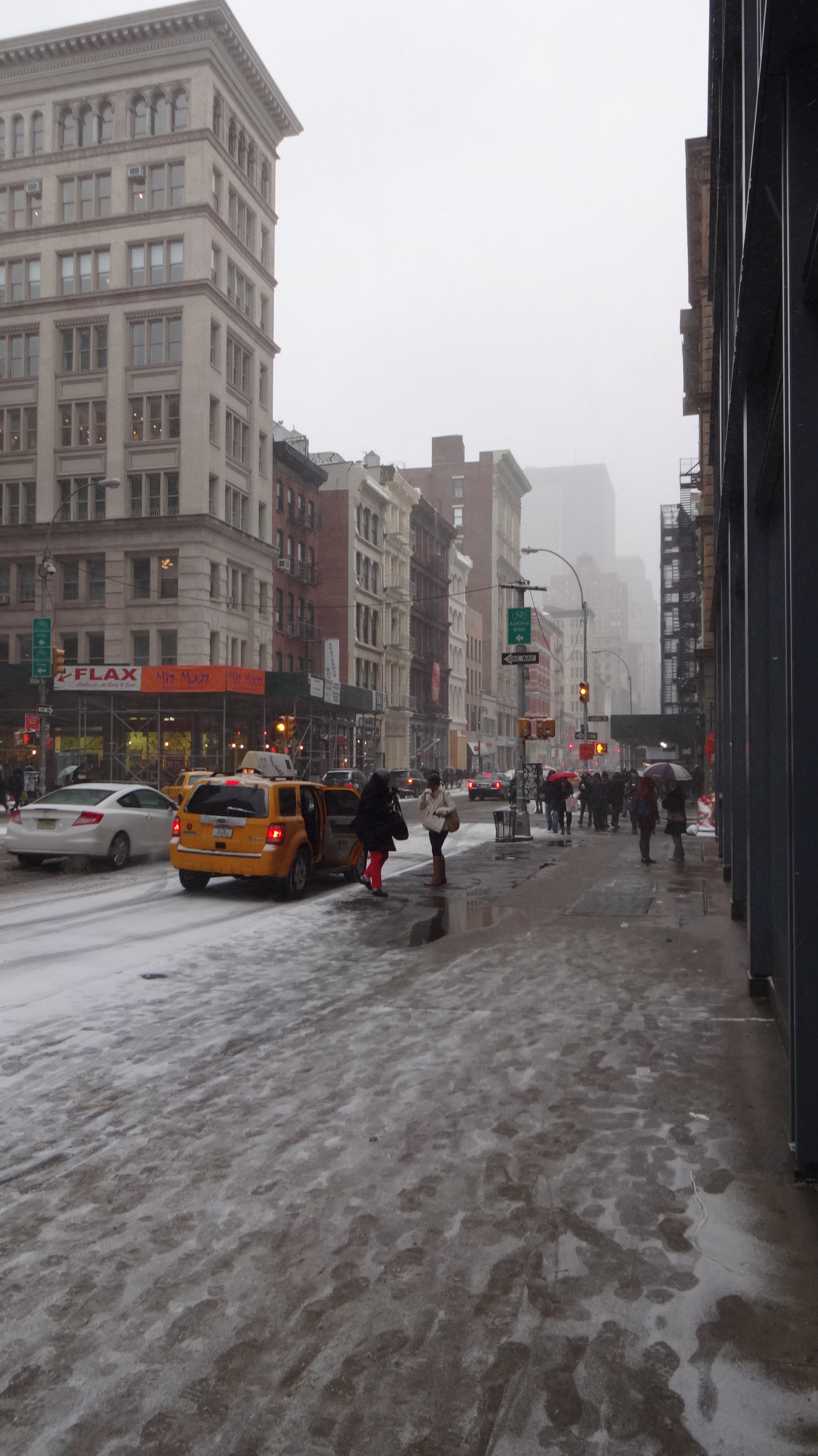 Tag 2 in NY. Heute hat sich auch noch Frau Holle in das weihnachtliche Treiben von New York eingemischt. Es hat den ganzen Tag geschneit. Die Strassen hatten bis zum Abend eine ca. 10 cm Schnneschicht. Ja, auch die Strassen! Denn diese werden, im Gegensatz wie bei uns Zuhause, nicht schwarz geräumt. Ich habe heute nicht einen Schneepflug gesehen. Dafür fahren die Autos sehr gemächlich.
