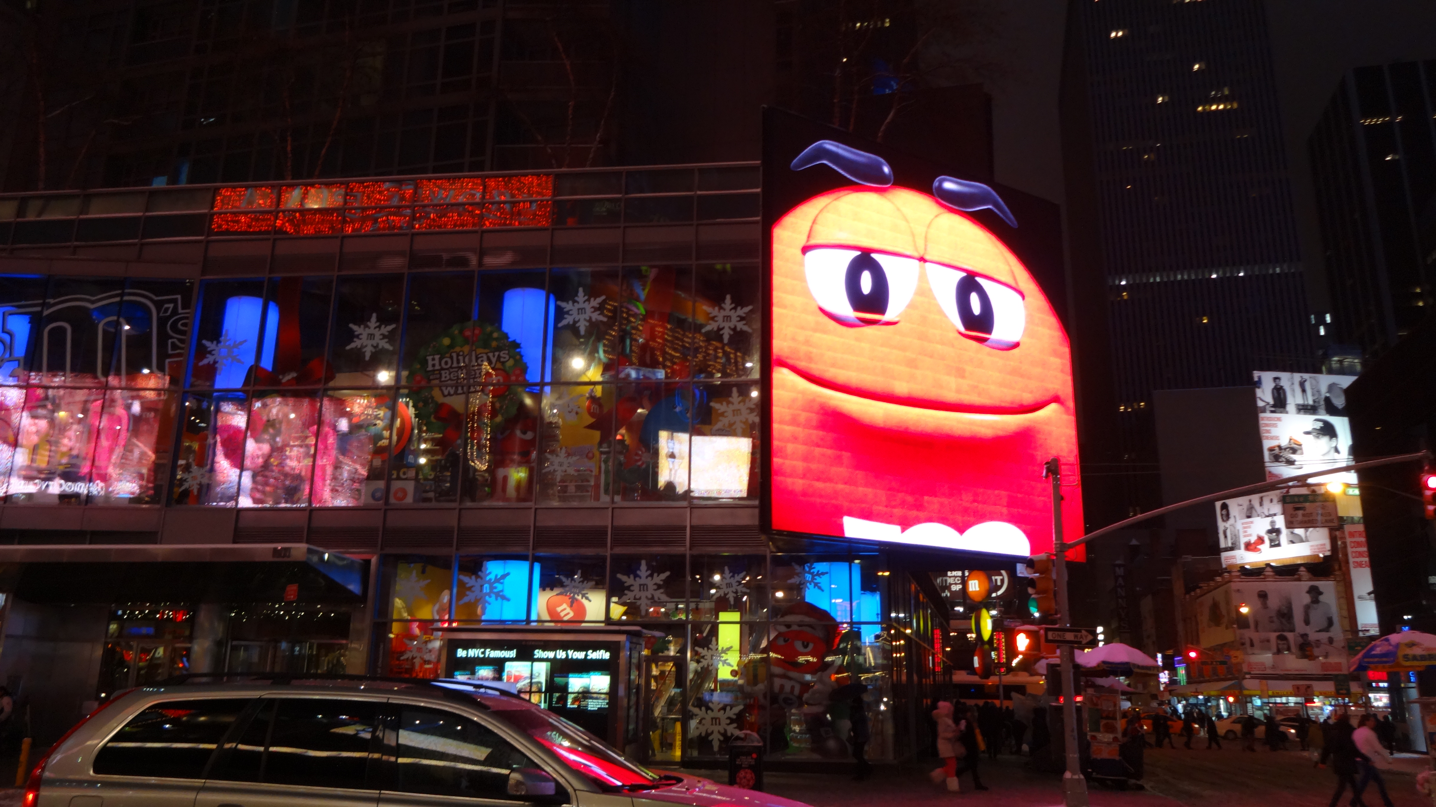 Als Abschluss von heute, nach einem feinen Esssen beim Italiener um die Ecke, „mussten“ wir auf dem Rückweg nochmals durch den m&m Shop, der stand da so einfach im Wege 🙂 Und diese blöden Schoggi-Nuss-Kügelchen waren so extrem in ihren durchsichtigen Plexi-Gefängnissen eingepfercht, dss wir erbarmen hatten und einige davon befreiten.