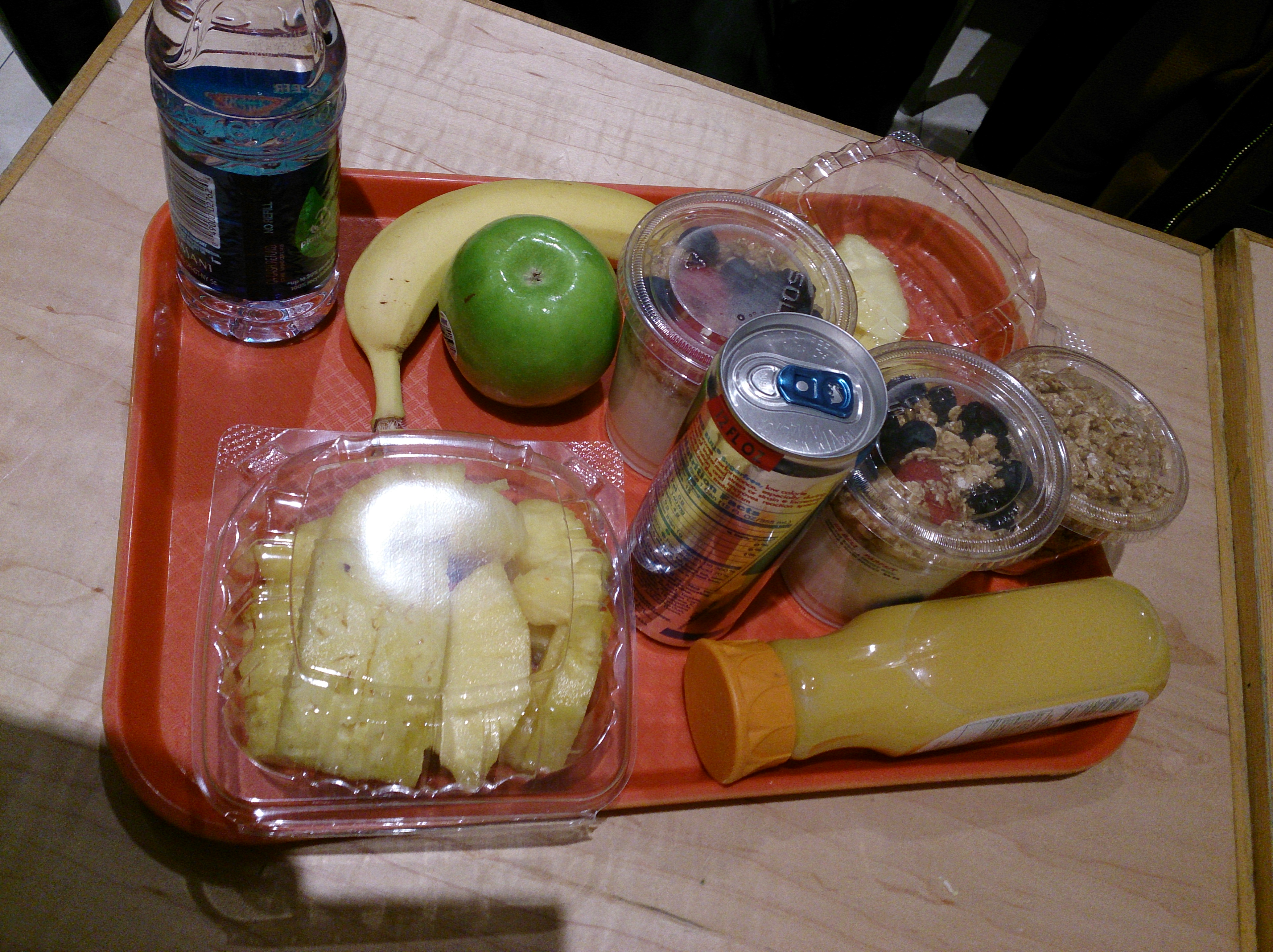Heute war das Entdecken der Boutiquen in Soho auf dem Plan. Plus Gound Zero. Plus runter an den Pier. Zuerst aber wurde gefrühstückt. Und dabei haben wir uns als Europäer geoutet. Denn, in unserem Standard-Zmorge-Shop-Kafi gibt es vor allem Fleisch, Eier und Omletten zur Auswahl. Unser Einkauf sah so aus: