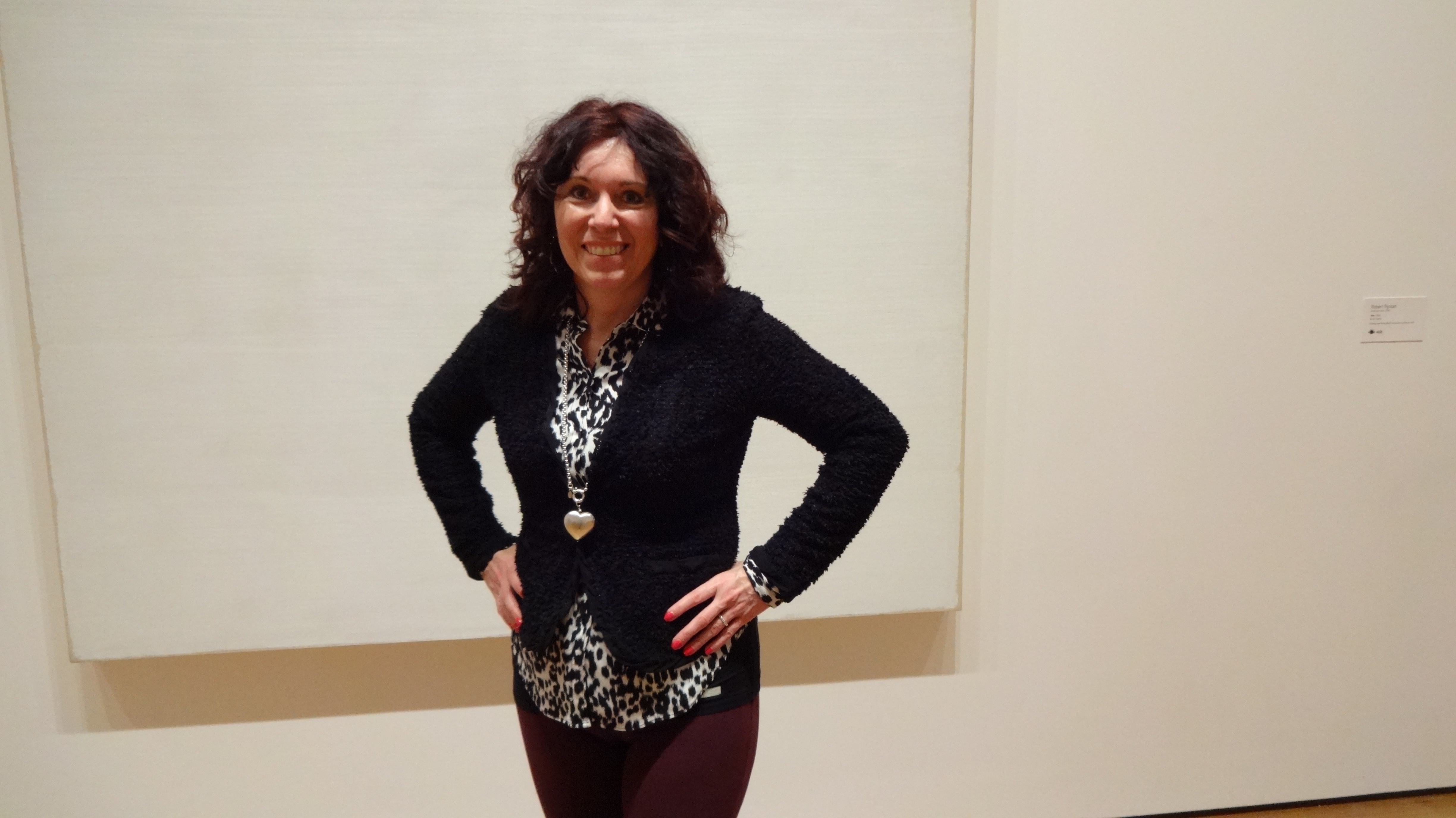Tja, und was soll ich sagen, Kunst ist halt Interpretationssache und der Fantasie des Künstlers überlassen. Wir haben alles gesehen, von weissen Bildern (also wirklich weiss, war NIX drauf), bis zu aufgehängten Schneeschaufeln. Damit das weisse Bild doch ein bisschen Farbe bekommt, hat sich Judith bereit erklärt, spontan davorzustehen: