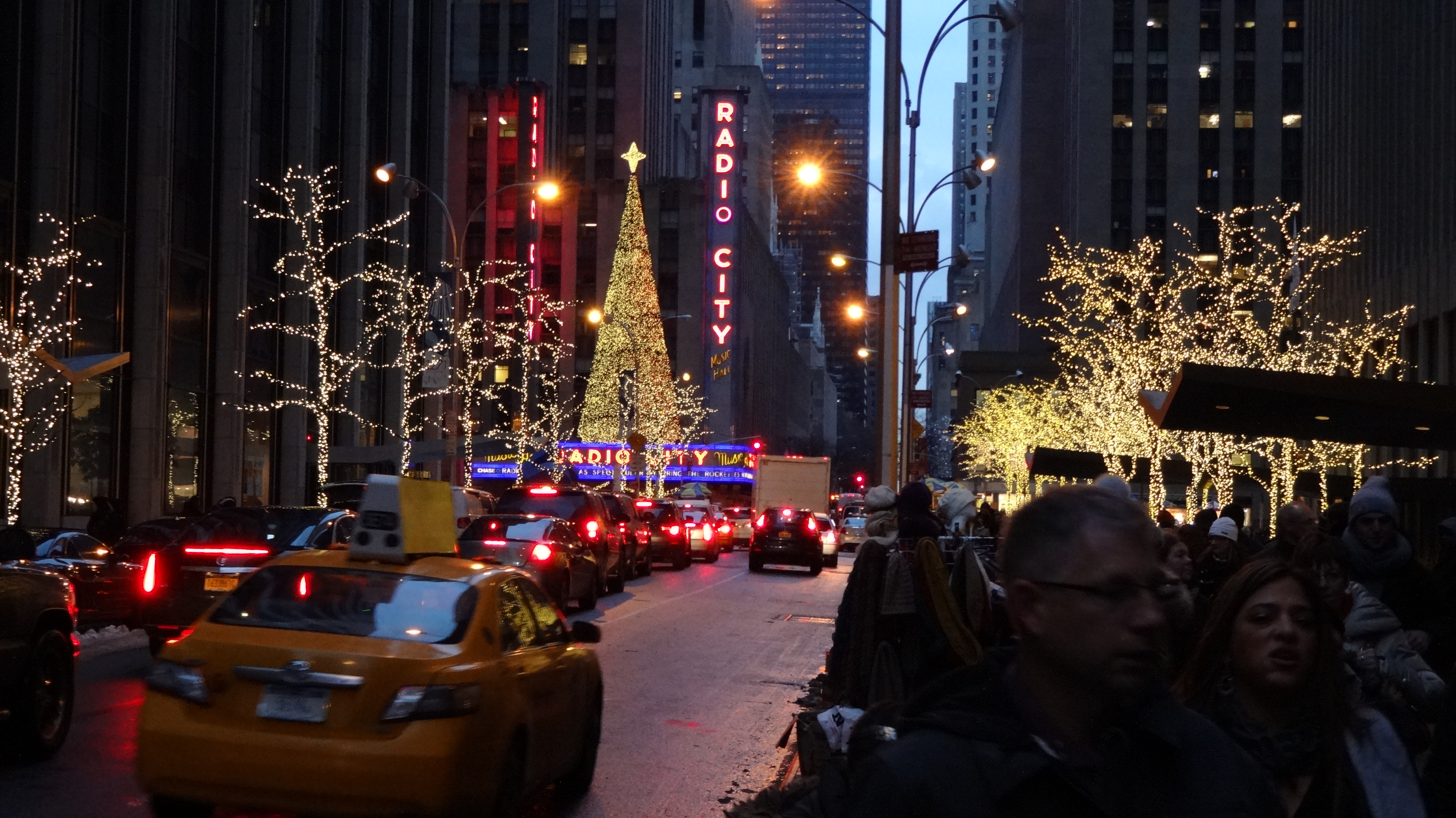 Und hier noch die Mutter aller Weihnachtsbäume, so quasi das Zentrum des Christentums, zumindest aus amerikanischer Sicht. Der Rockefeller-Weihnachtsbaum: