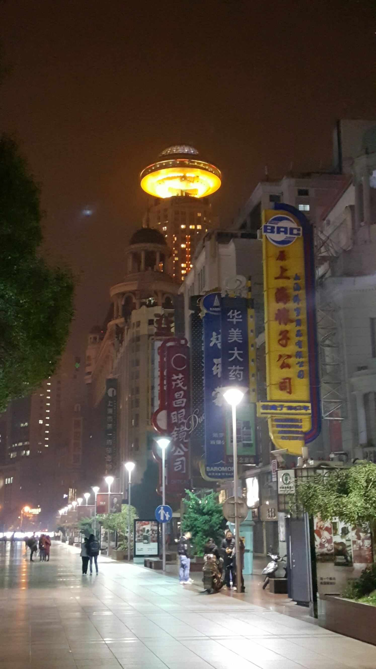 Sechs Minuten später hiess es dann also aus-, bzw. umsteigen in die Schneckentempo U-Bahn zum Hotel, das Radisson blu direkt am People Square. Zentral gelegen und gute Metro Anbindungen in alle Richtungen. Zudem ist im obersten Stock noch eine schöne Bar mit Sicht auf die Stadt. Von unten sieht die Bar wie ein soeben gelandetes UFO aus (vielleicht auch echt und als Nachschubweg für die Roboter gedacht 😆).