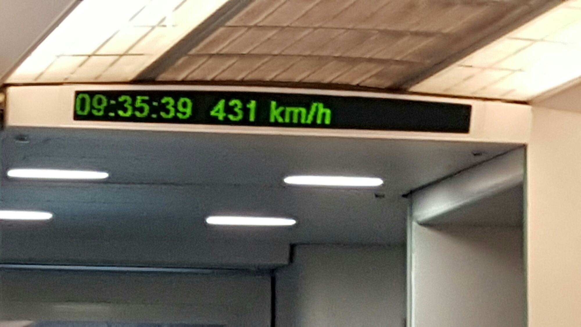 Kurz nachdem wir die Koffer in Empfang nehmen durften, mussten wir sie auch schon wieder röntgen lassen. Damit man in den Highspeed Zug ‚Magalev‘ einsteigen durfte, musste das Gepäck durch einen Sicherheitscheck. Ein Vorgehen, welches uns noch die ganze Woche begleiten wird. Der Magalev ist die schnellste Verbindung vom Flughafen in die knapp 40 Km entfernte Stadt. Diese Strecke legt er in 6 Minuten zurück! Die Spitzengeschwindigkeit war bei uns 435 km/h, ich wäre also so in 24 Stunden von Zürich in Shanghai, nur doppelt so lange wie mit dem Flugzeug. Und ich könnte schlafen 😉