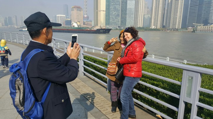 Apropos Alien: Die Chinesen nennen uns nicht nur so, sie lassen es uns auch spüren. Kaum aus dem Bus gestiegen, kamen 2 chinesische Fake Aliens auf uns zu und wollten unbedingt ein Foto von und mit uns haben. Ich habe dann natürlich auch gleich ein Foto vom Foto gemacht 😆