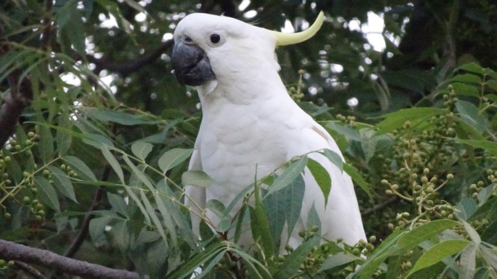 Ach ja, wilde, gefährliche und giftige Tiere haben wir auch gesehen. Wie z.B. diesen Kakadu, die sich zu duzenden auf den Bäumen aufhalten. Dieser hat sich extra für das Foto schick gemacht.