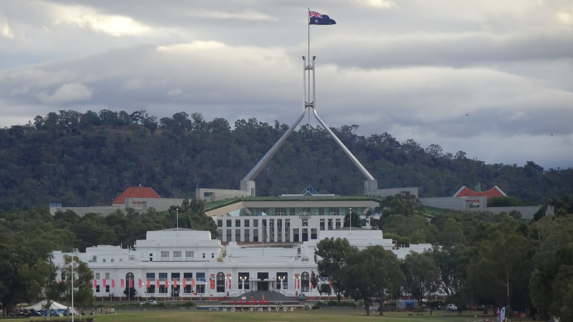 Gegen Abend sind wir dann in Canberra angekommen und gleich einen ersten Erkundungsrundgang zu Fuss gemacht. Man merkt, dass dies eine reine Planstadt ist. Entworfen vor ca. 110 Jahren, weil die rivalisierenden und bevölkerungsreichsten britischen Kolonien Victoria und New South Wales auf Melbourne, bzw. Sydney als Hauptstadt bestanden. Als Kompromiss wurde Canberra auserwählt, bzw. dieser Standort. Canberra zählt heute ca. 350’000 Einwohner und hat Strassen, so breit wie Fussballfelder. Immer schön quadratisch angeordnet und meistens leer. Da hat der VCS voll und ganz versagt 😉