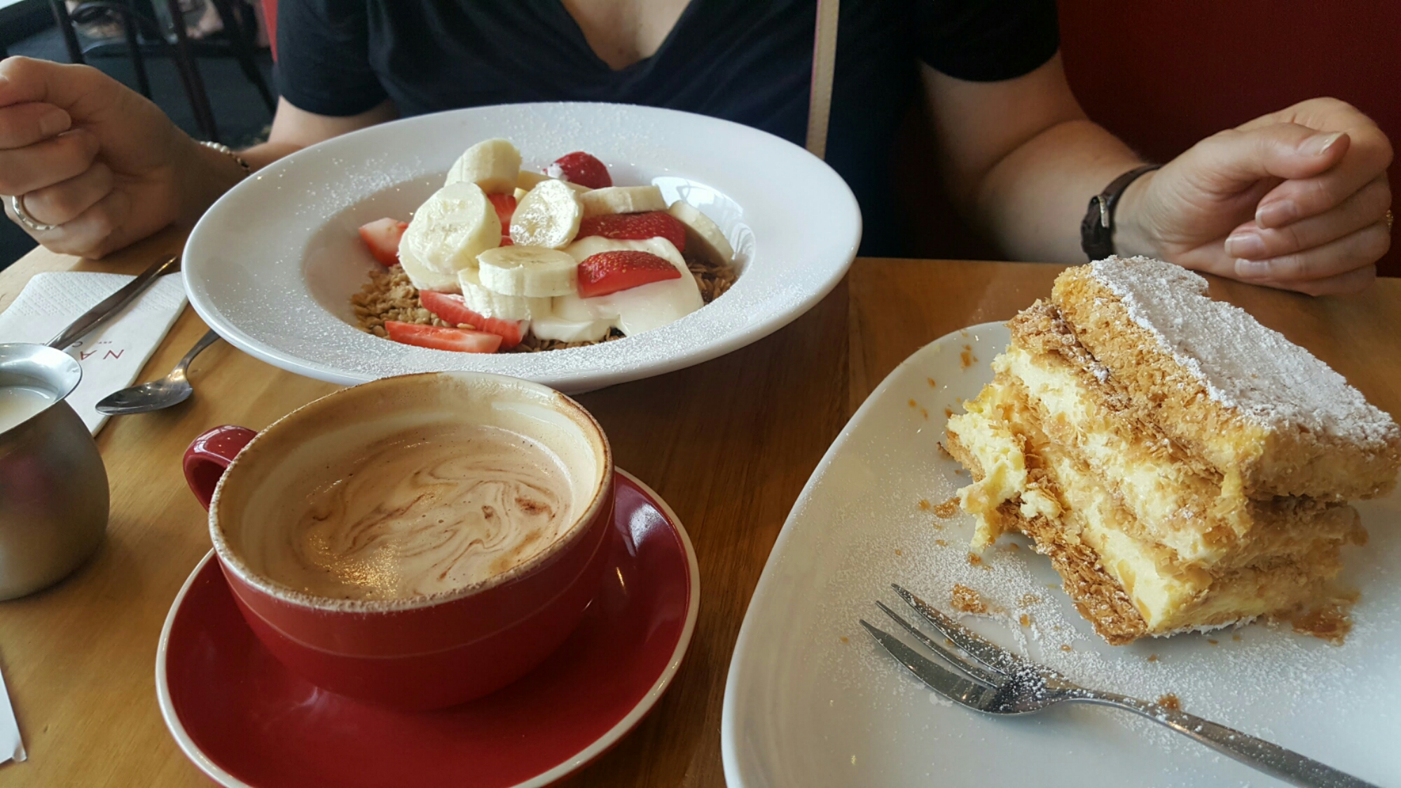 So haben wir also erstmals ein Cafe per Tripadvisor gesucht und auch gefunden. Und wie es der „Zufall“ so will, sogar in einem Einkaufszentrum. Also hatten wir eine Beschäftigung für mehrere Stunden… Und was gibt es besseres, als den Morgen mit einem Zuckerschock zu beginnen – die Cremeschnitte war aber göttlich!