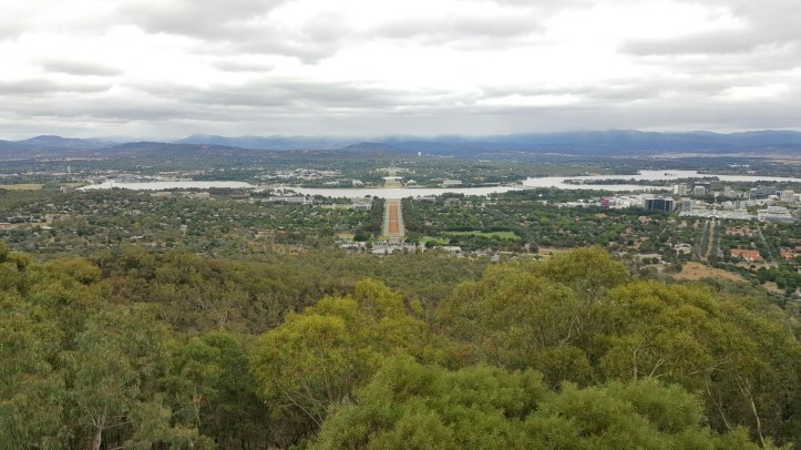 Canberra auf einer Meereshöhe von 550 Metern ist mit knapp 350’000 Einwohnern die grösste Stadt in Australien, welche nicht an der Küste ist. Ist also von der Einwohnerzahl etwa so gross wie Zürich, aber von der Fläche 9x grösser. Das merkt man überall, es hat einfach Platz zum ‚versauen‘. Der Mount Ainslie ist dann so quasi der Uetliberg mit einer Höhe von 842 Meter. Von dort oben hat man einen grossartigen Überblick über die Stadt und wie sie geometrisch aufgebaut ist. In der Mitte sticht der grosse Paradeweg vom Kriegsdenkmal zum Parlament heraus.