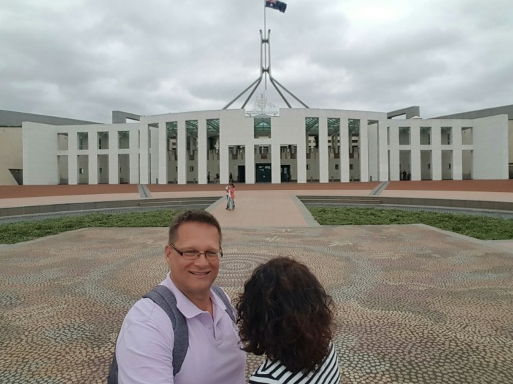 Den Morgen verbrachten wir in der Retortenstadt Canberra im Regierungsviertel. Pompös, aber irgendwie kommt es mir vor wie in einem Science Fiction Film. Alles blitzeblank, alles geometrisch geordnet, viel Sicherheitsleute und Polizei, anonsten leer, mucksmäuschenstill, hightech. Es fehlen wirklich nur noch die Laserpistolen und das eben gelandete Raumschiff mit den 5 Äugigen, fremdgesteuerten Soldaten, welche die Macht übernehmen wollen.