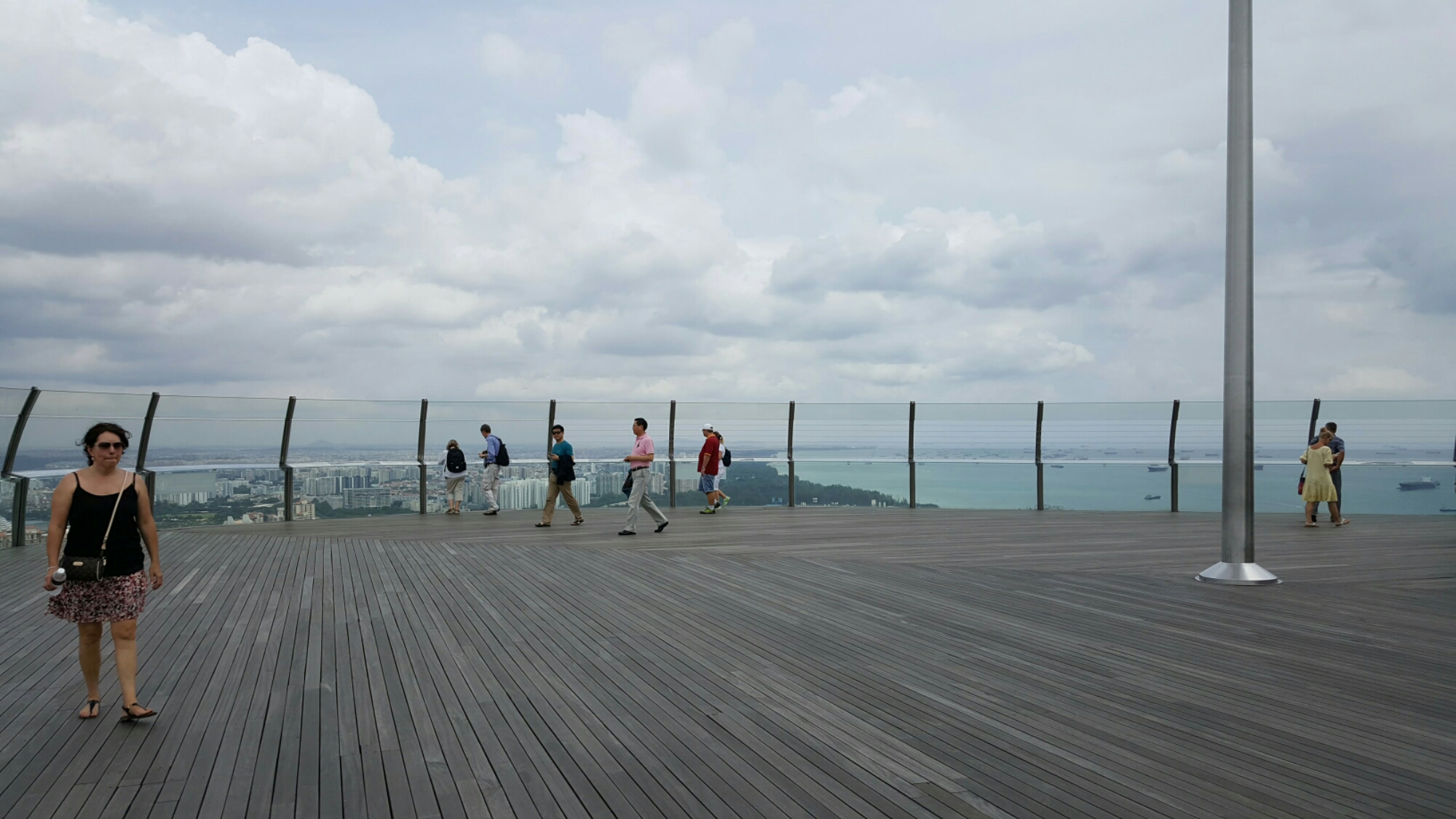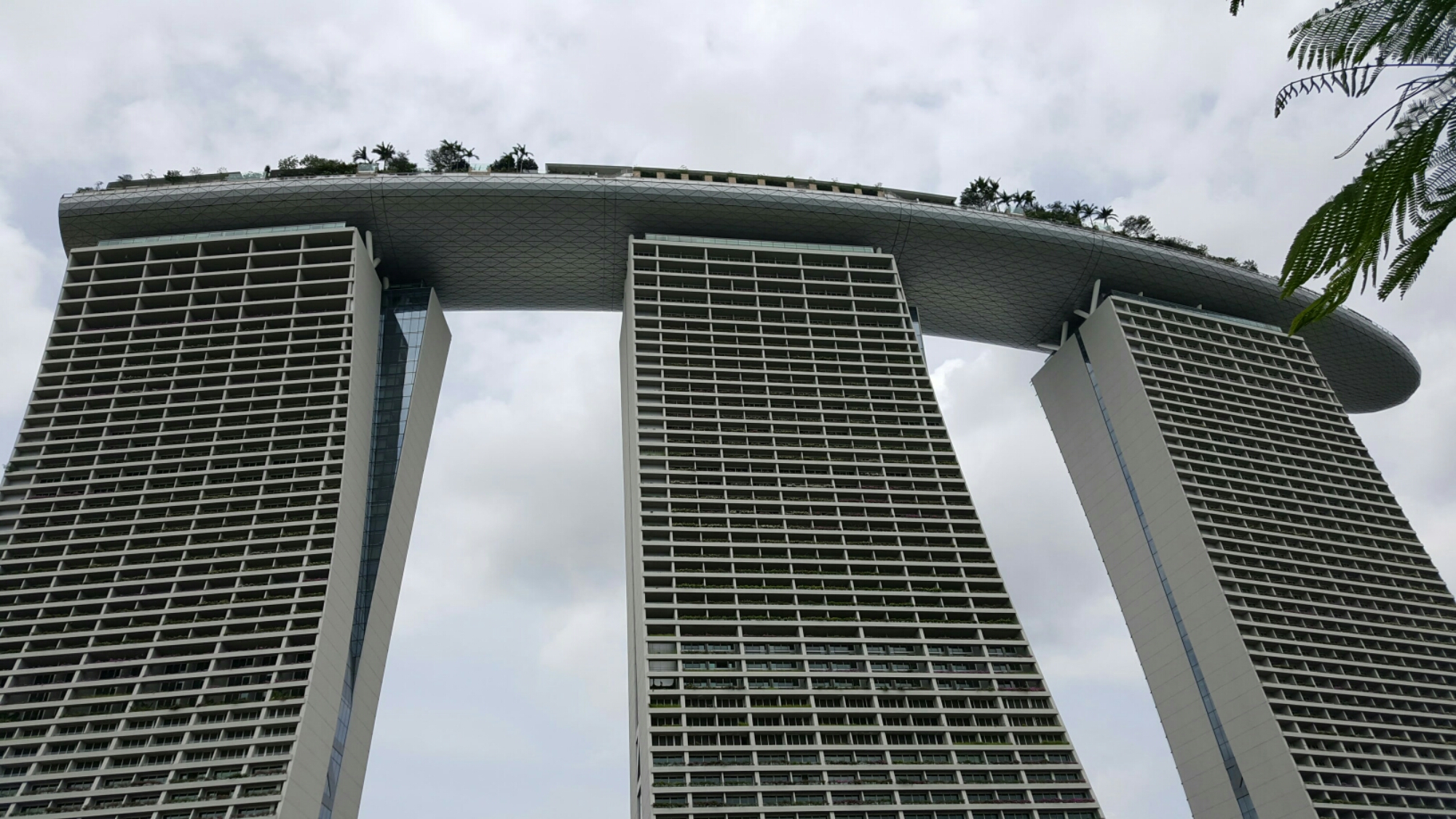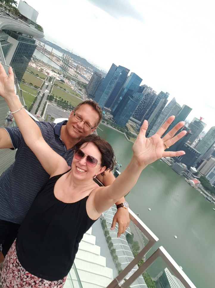 Weiter gings zum Marina Sands Bay Hotel. Mit über 2500 Zimmern nicht gerade ein kleiner Klumpen, schon eher eine eigene Stadt mit Shoppingcenter und Casino. Bauherr und Besitzer ist eine Firma aus Las Vegas. Und so sieht es auch aus. Drei riesige Towers, zuoberst verbunden mit einem ‚Schiff‘, Für mich sieht es eher aus wie ein gekrümmtes Surfbrett. Dort oben ist auch der Hotelpool untergebracht und eine Aussichtsplattform für nicht Hotelgäste. Also 23 Dollar bezahlt und rauf mit dem Lift.