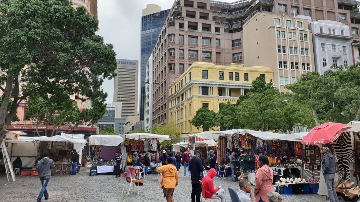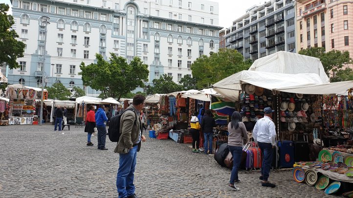 Wir gehen Weg vom ’sicheren‘ Touristenbereich an der Waterfront in die Innenstadt. Es wird ja viel betreffend der Sicherheit in Kapstadt geschrieben, dass man lieber immer ein Taxi oder Uber nehmen sollte wenn man die Waterfront verlässt, egal wie weit weg das Ziel ist. Meiner Meinung nach übertrieben, wir haben bisher auf unserer Reise bis auf zwei Ausnahmen immer nur sehr freundliche und hilfsbereite Menschen getroffen. Die zwei Ausnahmen waren aus meiner Sicht betrunken oder angetrunken, aber diese ignoriert man einfach und ferig.