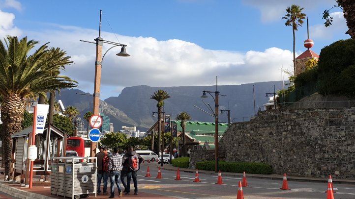 Wir haben gut geschlafen zwischen den drei TV’s, die Strahlenbelastung war nicht zu gross. Das Abenteuer Kapstadt kann beginnen. Die elektrischen Fensterstoren öffnen sich und uns zeigt sich der Tafelberg unverhüllt. Wolken hat es leider trotzdem, aber das Wetter soll jeden Tag besser werden.