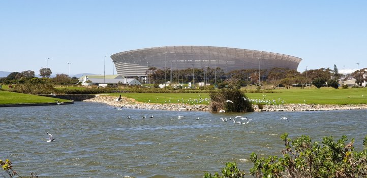Wir laufen nun von dort durch den Green Point Park Richtung Heimat, also Waterfront. Vorbei am Fussballstadion der WM 2010.