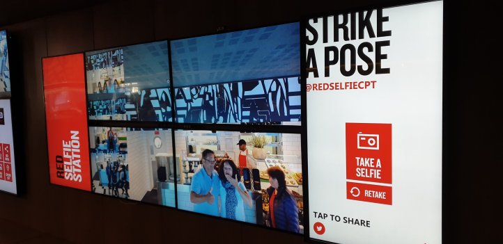 Die Selfiewand links haben wir natürlich auch ausprobiert…. und plötzlich waren over aged Millennials auf der Wand zu sehen: