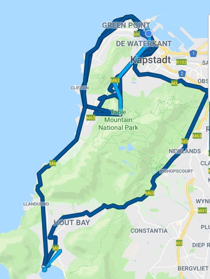 Die Route führt zuerst durch dichte Wälder und illegale Städte, bzw Townships. Imizamo Yeth hat über dreissigtausend Einwohner, eigentlich an bester Hanglage. Nur war leider dieses Township nie vorgesehen, im Gegensatz zu anderen. Daher fehlt auch die Infrastruktur, es gibt nur wenige Toiletten für die ganze Bevölkerung und der Fluss Disa, welcher durch die Siedlung führt, hat die höchste Anzahl an Kolibakterien von ganz Afrika. Traurig!